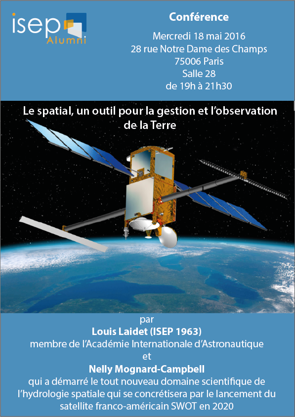 Conférence suivie d’un pot Mercredi 18 mai 2016 de 19h00 précises à 21h30 28 rue Notre Dame des Champs, Paris 6ème Salle 28 Le spatial, un outil pour la gestion et…