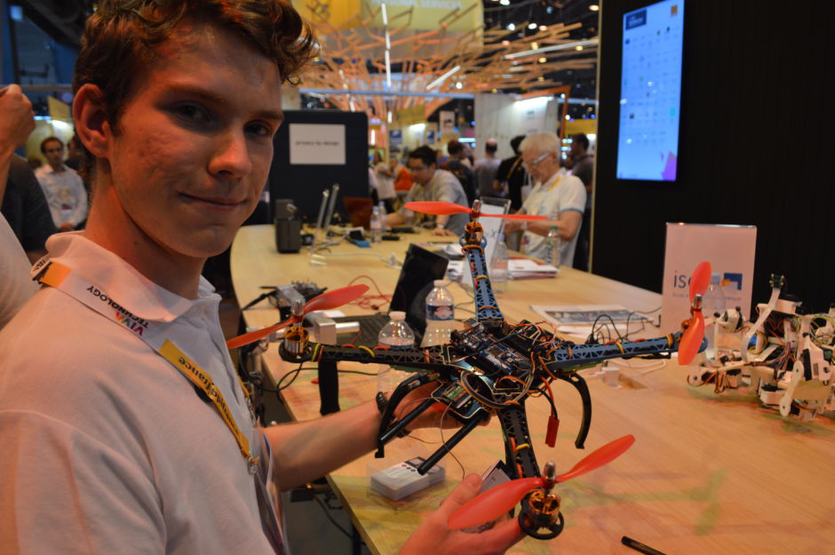 Du côté de la jeunesse créative, Viva Tech avait invité de nombreux étudiants. Soutenu par la Fondation Orange, le travail de Thierry Lincoln, étudiant à l’Institut Supérieur d’Electronique de Paris, est légèrement différent. Son crédo ? Le hardware et la programmation. « Par rapport au drone, l’idée est de proposer différents robots qui sont adaptés à de l’enseignement. Le drone rassemble l’ensemble des compétences techniques nécessaires à l’ingénieur dans le numérique. Il y a des télécommunications, de l’électronique, des processeurs, de la physique, des mathématiques. Ce que l’on souhaite faire, ce sont des procédés DIY en ligne, en vendant des cartes électroniques programmables et des petits hardware en carton assez solides. La personne pourra ainsi apprendre au fur et à mesure comment faire un drone ». Pas bête. Lire l’article