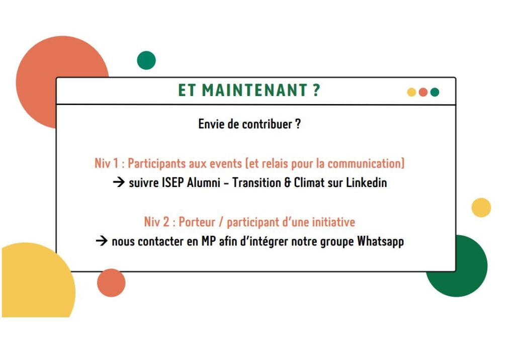 POUR les Alumni, les étudiants et les membres de l’Isep QUI VEULENT initier / nourrir une réflexion sur leurs rôles pros et perso dans la transition environnementale.