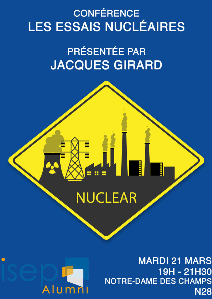 Les essais nucléaires sont aujourd’hui interdits mais Jacques viendra transmettre son savoir aux Isepiens afin de vous faire revivre ces moments hors du commun.